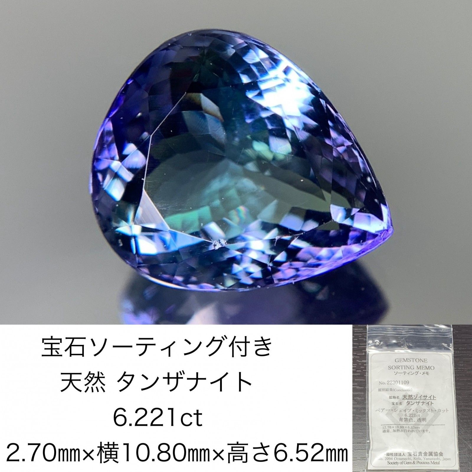 宝石ソーティング付き 天然 タンザナイト 6.221ct 縦12.70㎜×横10.80㎜×高さ6.52㎜ ルース 裸石 1563Y