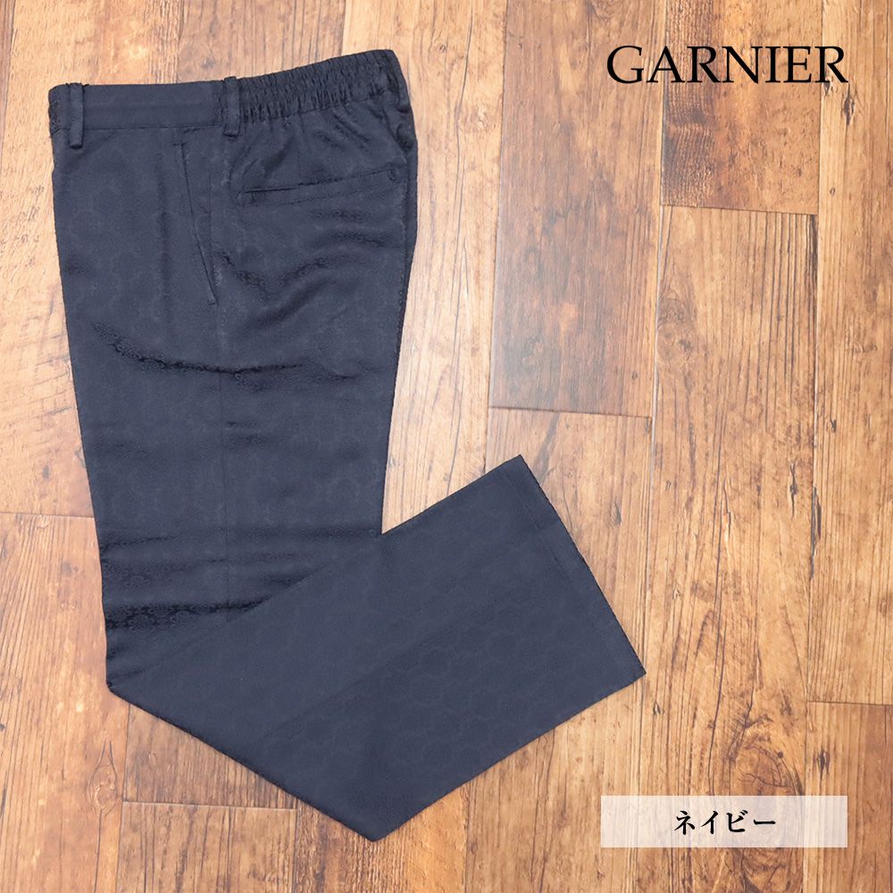 24秋冬|GARNIER|Lサイズ|イージーパンツ 4024570061 ジャガード ストレッチ アラベスク ちょいワル |紺|ネイビー|ma473|