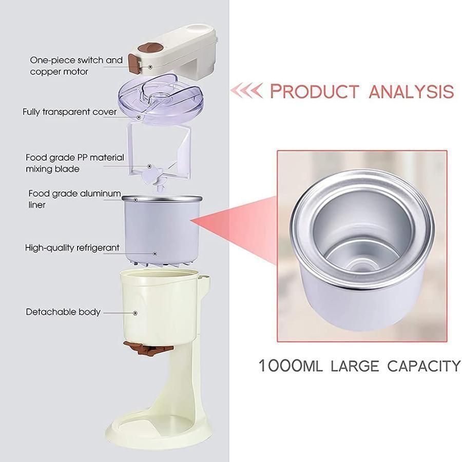 【ウィンドウ付きイージーロックリッド】リッドは簡単に取り外してロックできるように設計されています。材料ウィンドウを使用すると、材料を上部から直接注ぎ、凍結プロセスを監視できます。アイスクリームを作成および分配するのに十分な強度の頑丈なモーターが含まれています。